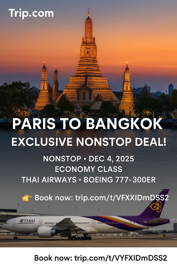 BangkokTrip #FlyThaiAirways #TravelDeal #ParisToBangkok #NonstopFlight #HolidayEscape #TripComDeals #TravelMoreForLess #AsiaAdventure #ThaiExperience